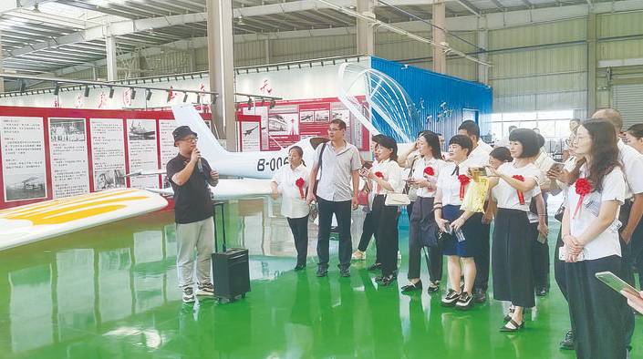 (百名优秀教育工作者乘坐教师节主题公交巴士来到芦淞区山河星航实业股份有限公司,参观株洲造飞机并现场体验。 株洲日报全媒体记者/孙晓静 摄)