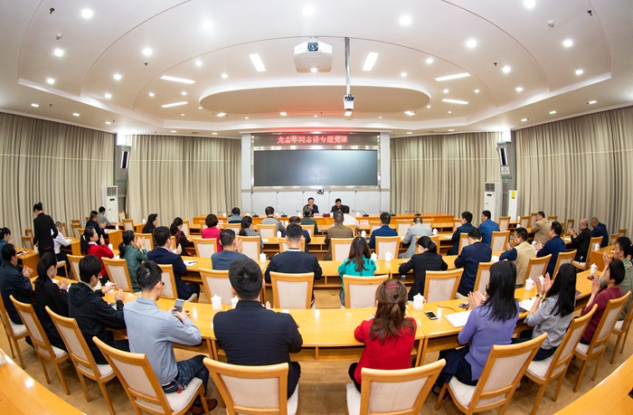 一开场,龙志华就以什么是共产党人的初心和使命?为什么要强调“不忘初心、牢记使命”?这两个问题拉开了党课的序幕,在随后的讲课中,他引用发生在湖南汝城县沙洲村《半条被子》故事以及周恩来总理立志“为了中华之崛起”而读书的豪情壮志,为不忘初心作出了最佳诠释。他讲到,“初心”就是出发时的目标、誓言和承诺。“为中国人民谋幸福,为中华民族谋复兴”这个初心和使命,是市政府办公室每一名党员要始终铭记在心的,也是我们一生要坚守的理想和信念。