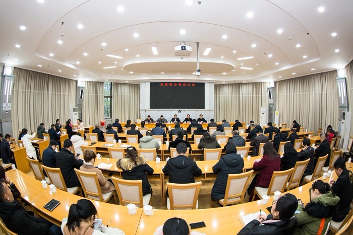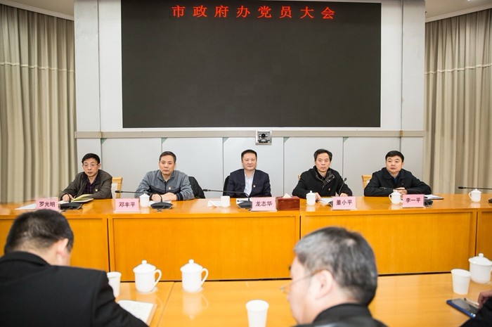 1月15日,市政府办公室在市政府二楼东会议室召开机关党委换届选举大会,市政府秘书长、市政府办党组书记龙志华出席大会并讲话,市政府副秘书长、市政府办党组成员董小平主持会议。