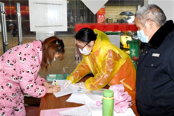 “有了通行证,就能避免外来人员随意进出小区。”南湖塘社区党委书记周亮介绍说。该社区共有9个小区4104户,常住居民和流动居民1.3万余人。每个小区只保留了一个出入口,并在出入口边上设立了卡点,安排专人24小时值守,对进入小区人员要求出示通行证、测量体温和询问、登记信息等程序,才能进入小区。目前,证件发放和登记管理工作正在迅速推进中。