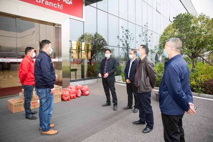 在北汽株洲分公司以及三一智能城工地,罗光明一行与企业相关负责人进行了简短交流并送去部分慰问物资,现场还就进一步搞好驻企工作、帮助企业加快复工复产进度与力度交换了意见。