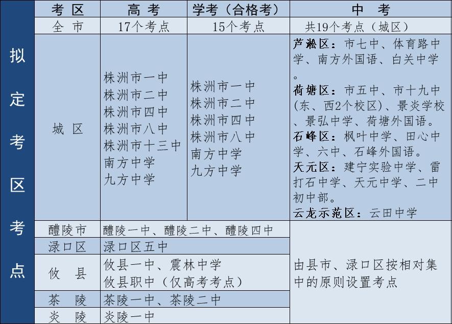 高考、学考、中考(简称“三考”)备受社会各界关注,今年由于受新冠肺炎疫情影响,高考、中考比原定计划推迟一个月,学考比原定计划推迟二个月。一起来看看株洲市的安排: