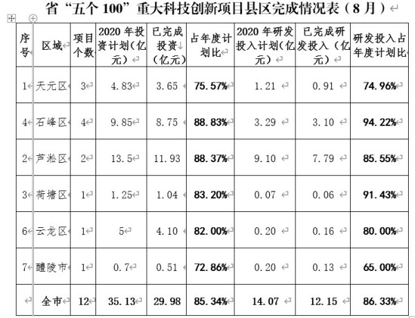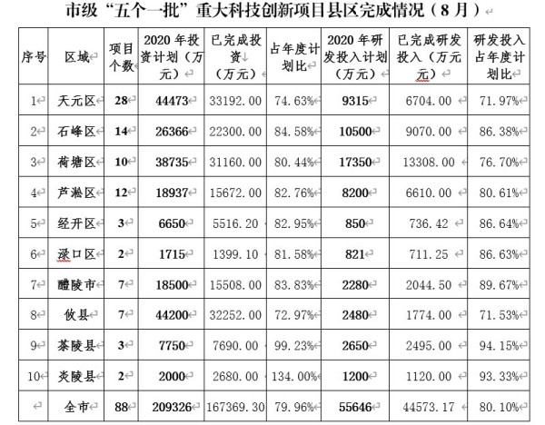 12个省“五个100”重大科技创新项目中,石峰区、芦淞区项目投资进度最快,分别达到全年计划的88.83%、88.37%;石峰区、荷塘区研发投入进度最快,分别达到全年计划的94.22%、91.43%。