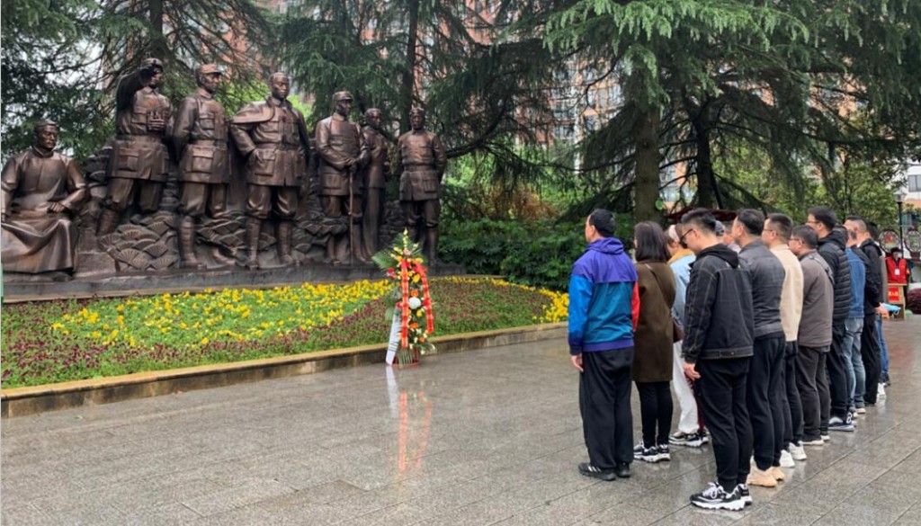 缅怀英烈,寄送哀思。 4月2日上午,根据党史学习教育的学习要求和支部工作安排,株洲市行业办公室机关党支部党员干部来到株洲烈士纪念园开展清明节祭扫活动。在烈士纪念雕像前,党员干部怀着崇敬的心情,向革命烈士默哀致敬,敬献花篮,深切缅怀先烈的丰功伟绩。