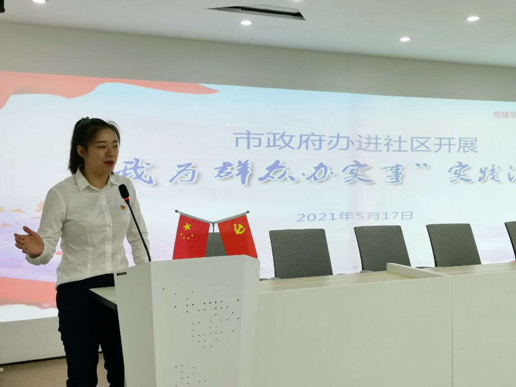 在全市“学党史 悟思想 办实事”学习教育开展以来,市政府办着力聚焦聚力重点任务,贯彻新发展理念办实事,让群众分享高质量发展成果,共享高品质幸福生活,推动“我为群众办实事”实践活动走细走实,全体党员干部牢记嘱托,立足本职工作用情用力为民解忧,不断把学习成果转化为工作动力和成效。市政府副秘书长、市政府办党组成员邓丰平,市政府办党组成员、副主任、机关党委书记罗光明,市政府办机关党委委员,以及机关第二、三、五党支部党员、泰园社区党员共计三十余人参加此次活动。