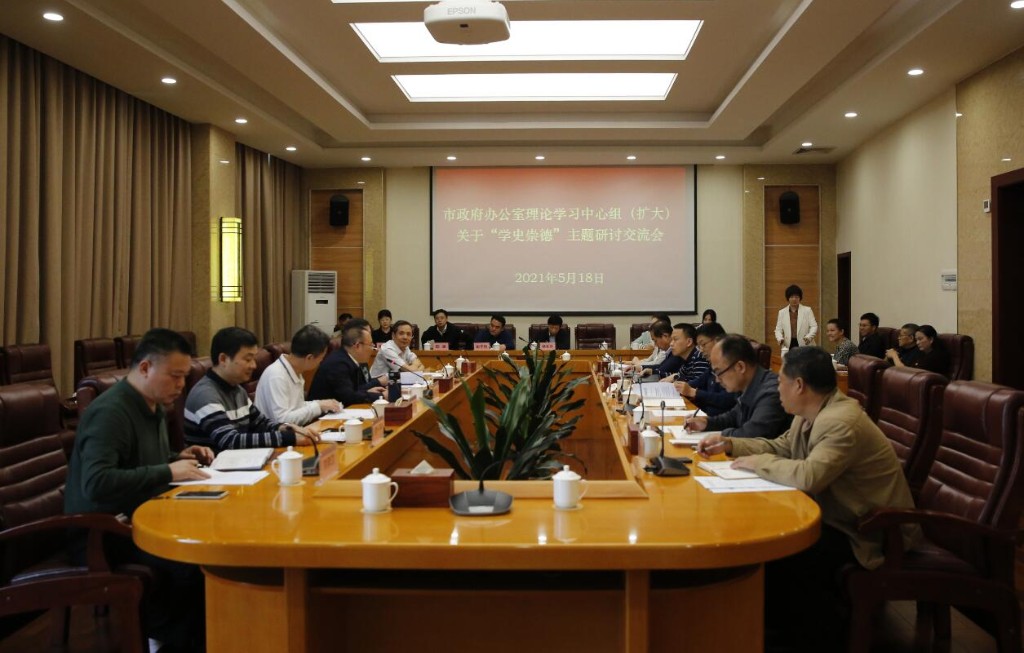 会上,市政府办公室党组成员、副主任、机关党委书记罗光明同志领学了习近平总书记关于党史学习教育的重要论述,明确了学史崇德的内容要求、学习方式和学习举措。研讨中,市政府副秘书长、市政府办公室党组成员董小平以《坚持学史崇德 赓续红色血脉》为题,市政府副秘书长、市政府办公室党组成员邓丰平以《学史崇德 永葆对党忠诚之心》为题,市政府督查专员、督查室主任周志云以《人无德不立 国无德不兴》为题,市政府办公室优化办主任王林华以《提振精气神 奋进新时代》为题分别作了中心发言。