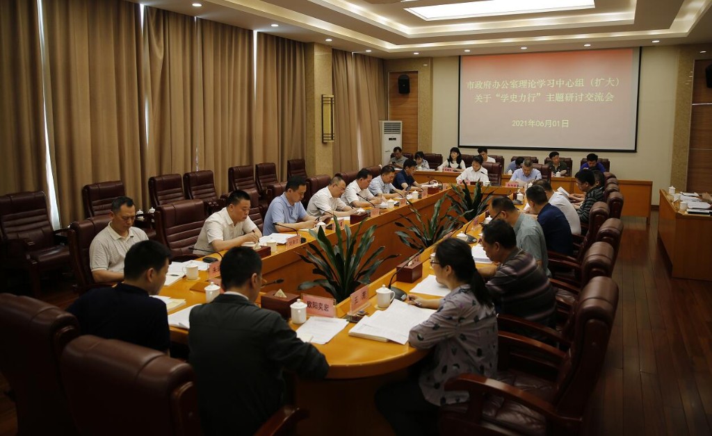 会上,市政府办公室党组成员、副主任、机关党委书记罗光明同志领学了习近平总书记关于党史学习教育的重要论述,明确了学史力行的重点、方向和目标。市政府副秘书长、市政府办公室党组成员周南洋同志以《学史力行做到“三个”必须》为题,市政府办公室四级调研员欧阳弈宏同志以《学史力行 以行践知》为题,市政府办公室四级调研员曾纲同志以《学史力行 不断淬炼党性修养》为题分别作了中心发言,其他党组成员逐一进行发言,开展研讨交流。