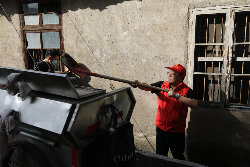 清扫现场,罗绍昀头顶烈日,手拿铁铲,仔仔细细清理各类垃圾。在场党员干部有的在搬运废弃家具,有的在扫居民楼梯,有的甚至弯腰钻进管洞里清扫垃圾。