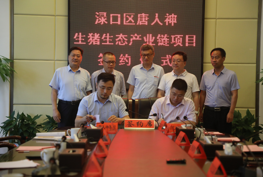 5月25日上午,唐人神集团与渌口区成功签约生猪生态产业链项目(框架协议),区委书记罗绍昀参加仪式并讲话,区委副书记、区长刘克胤主持。