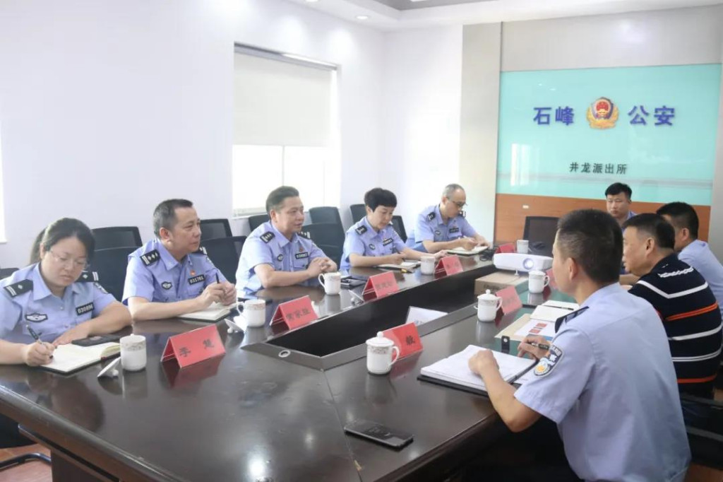 8月6日上午,市局党委委员、副局长贺建初率市局综合管理支队支队长李韧、警务保障部副主任常家胜一行到石峰分局井龙派出所督导调研县域警务工作,市局副调研员、分局党委副书记、政委胡登龙陪同调研。