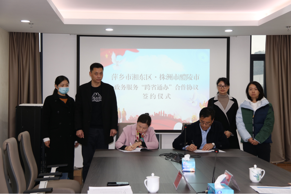 近日,醴陵市行政审批服务局与萍乡市湘东区公共政务管理局签订“跨省通办”合作协议,标志着两地政务服务合作机制正式建立。