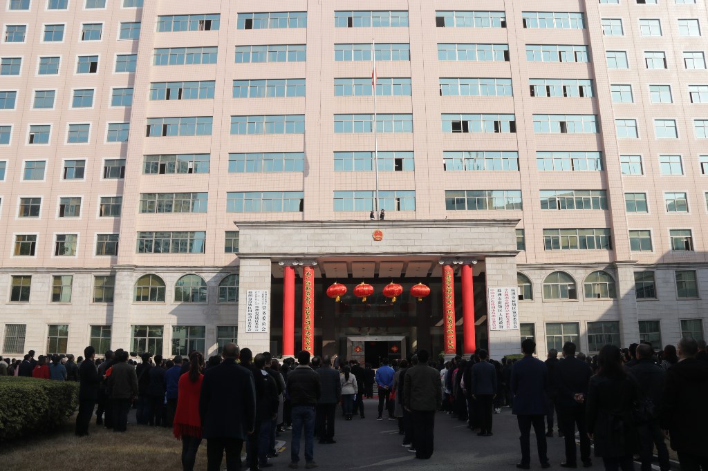 上午9时28分,全场肃立致敬,伴随着庄严的国歌,旗手展旗有力,五星红旗冉冉升起、迎风飘扬。全体干部怀着无比崇敬的心情面向国旗行注目礼,表达对伟大祖国的无限敬意。