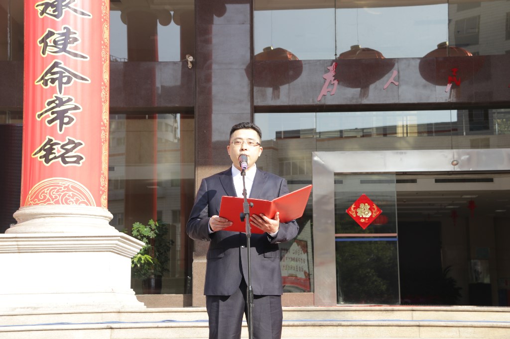 2月18日是春节后第一个工作日,荷塘区在区直机关办公楼前举行新年升国旗仪式。区委书记邬凌云出席仪式并致辞,区委副书记、区长罗鹏程主持升旗仪式。