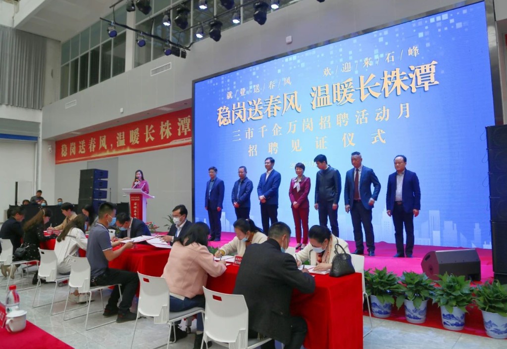 3月15日下午,“稳岗送春风,温暖长株潭”三市千企万岗招聘月活动——石峰区专场招聘会在南方中心隆重举行。此次招聘会共有300余家企业带来约15000个就业岗位,吸引了线上线下近万名求职者积极参与。长沙市天心区副区长张建,湘潭市岳塘区委常委、常务副区长黄珂莅临活动并发表致辞,株洲市人社局党组成员、总会计师罗芳,株洲市石峰区委副书记、区长邹志超,区领导宋长征、朱斌、周文安、陈军等出席活动。