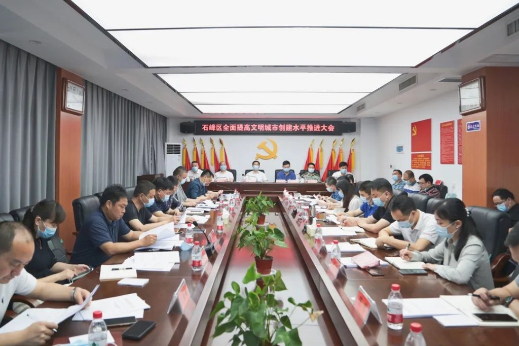 4月26日下午,石峰区召开全面提高文明城市创建水平推进大会。区委书记、区文明城市创建整改工作领导小组第一组长邹志超出席会议并讲话。区委副书记、政法委书记、区文明城市创建整改工作领导小组副组长李军主持会议。区委常委、宣传部长、区文明城市创建整改工作领导小组副组长刘甡通报了全面提高全国文明城市创建水平有关工作。