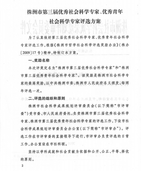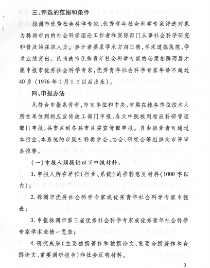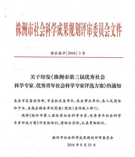 关于印发《株洲市第三届优秀社会科学专家、优秀青年社会科学专家评选方案》的通知