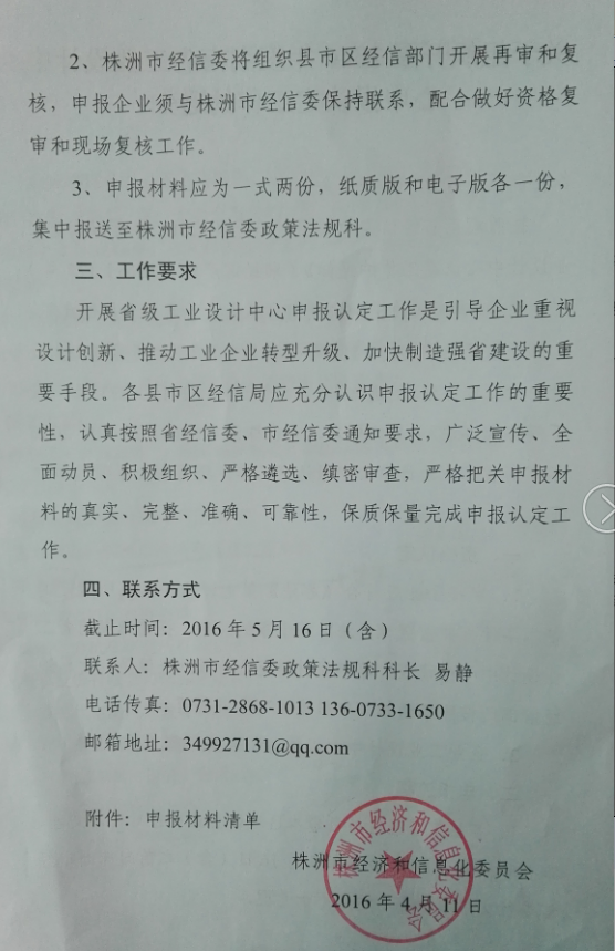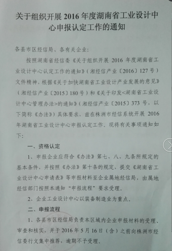 关于组织开展2016年度湖南省工业设计中心申报认定工作的通知
