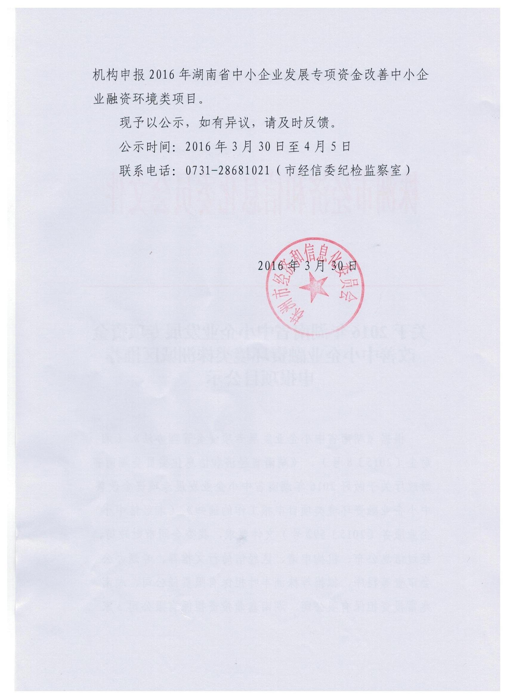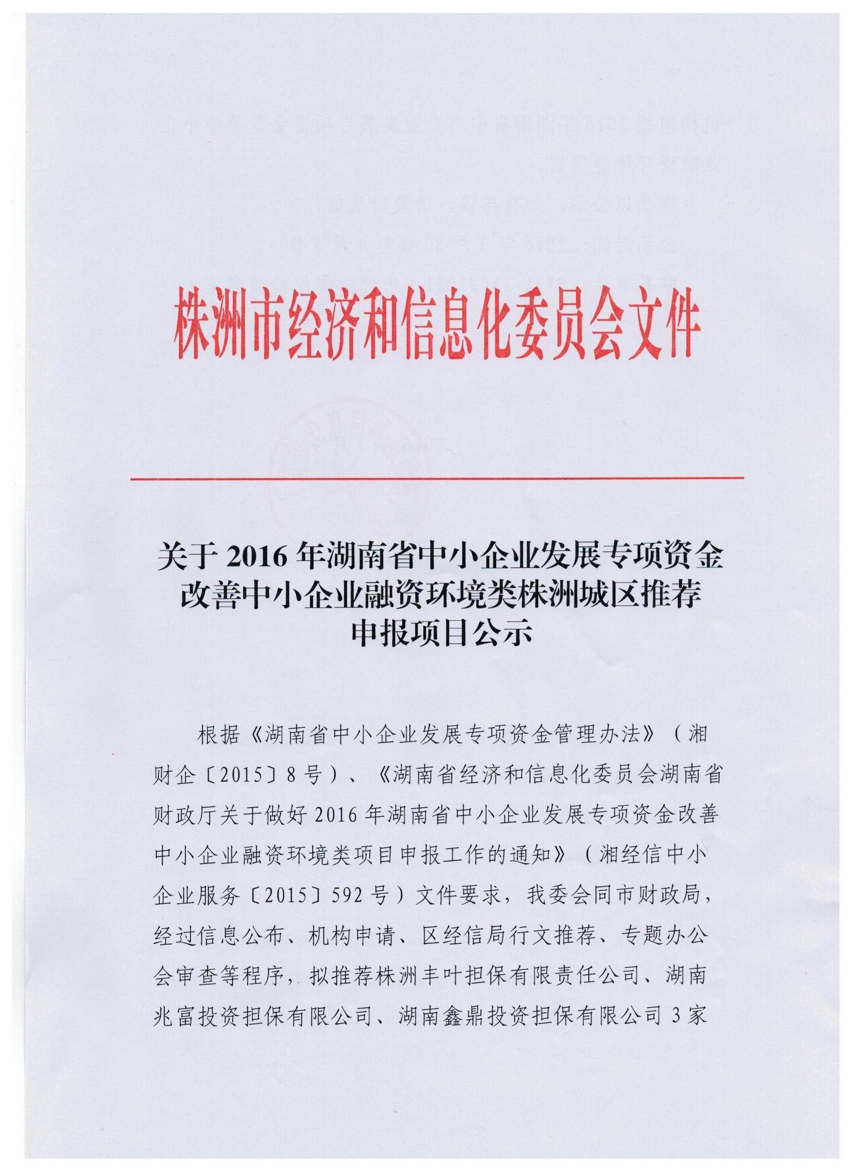 关于2016年湖南省中小企业发展专项资金改善中小企业融资环境类株洲城区推荐