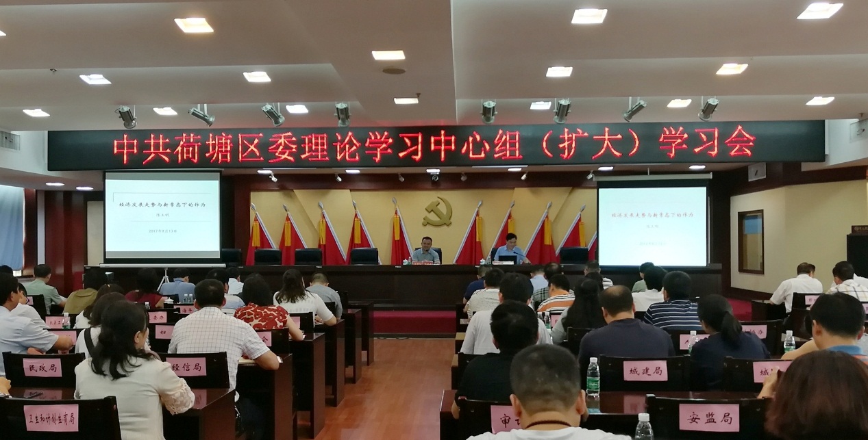 荷塘区党政主要领导干部、全体区委学习中心组成员及市直部门负责人100余人参加学习。