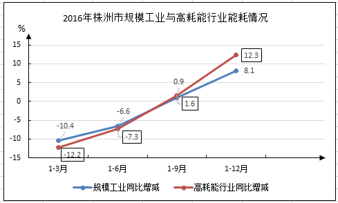 2016年,全市规模工业增加值增长速度总体维持在7%左右,随着大唐华银攸县能源有限公司投产、湖南远大水泥恢复生产,加上去年调结构后的低基数等影响,从9月开始,规模工业能耗出现增长,并逐月拉升。全年规模工业综合能源消费量累计为376.01万吨标煤,增长8.1%,比上年高出21个百分点;增幅居全省首位。能耗增长的主要原因有: