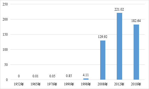 图2: 1952年-2018年石峰区工业增加值(亿元)