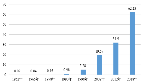 图1: 1952年-2018年石峰区地区生产总值(亿元)