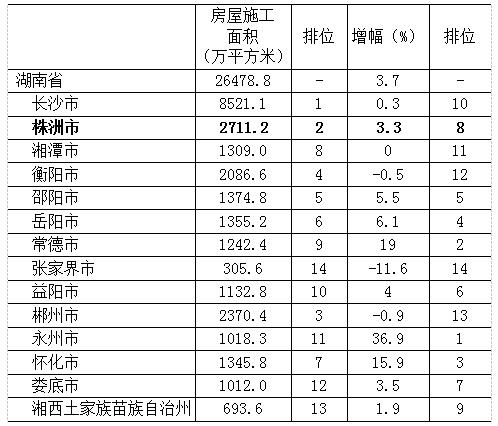 月份,全市房地产开发企业房屋施工面积总量继续保持全省第二位,但仅增长