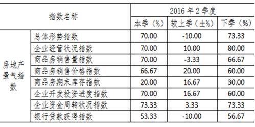 问卷调查表明:二季度以来,企业总体经营形势持续向好,商品房销售面积较快增长,销售价格小幅上扬,推动企业去库存水平提高,开发投资进度加快等,总体上看,房地产景气指数仍在回暖。对下季度,企业总体预期仍然偏好,销量、价格将延续稳中微升态势,投资预期增强,资金周转状况将有改善,但企业反映,银行贷款获取难度仍然较大,期望获得更多支持。