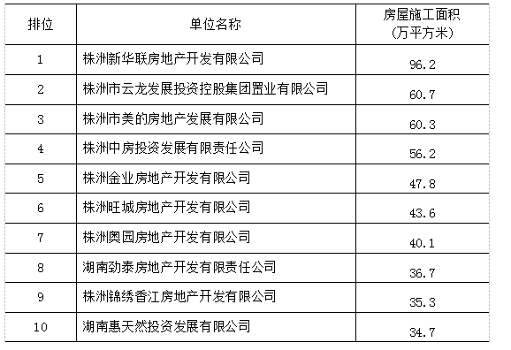 2015年,在各类利好政策刺激下,株洲市涌现出一批房屋销售好、施工面积大、贡献大的企业。