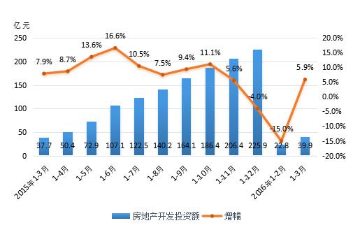 一季度,全市完成房地产开发投资39.9亿元,同比增长5.9%,高于全省平均水平3个百分点,增速比1-2月提高20.9个百分点,增幅在全省各市州中居第五位。其中,住宅投资26.9亿元,同比增长4.9%,增速比1-2月提高13.8个百分点,住宅投资占房地产开发投资的比重为67.4%;商业营业用房投资7.6亿元,同比增长14.1%。