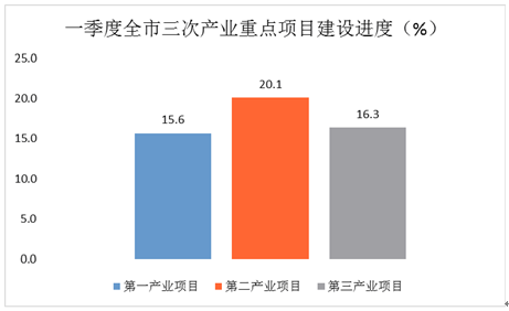 1、产业类项目进展较快。一季度,全市142个产业类重点项目完成投资53.06亿元,占年度投资计划的18%。13个第一产业项目完成投资2.86亿元,占年度投资计划的15.6%。77个第二产业项目完成投资28.83亿元,占年度投资计划的20.1%;其中服饰产业工程、陶瓷产业工程、新能源新材料产业工程完成年度投资进度超过30%。52个第三产业项目完成投资21.38亿元,占年度投资计划的16.3%。
