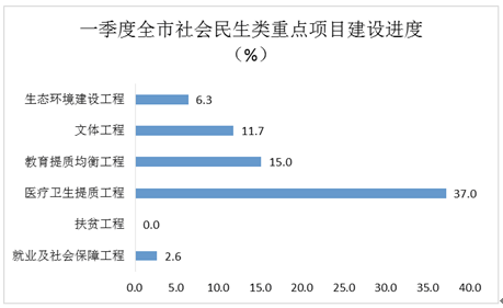 3、社会民生类项目相对较慢。一季度,全市30个社会民生类项目完成投资8.53亿元,占年度投资计划的4.6%。医疗卫生提质工程完成投资0.85亿元,占年度投资计划的37%,教育提质均衡工程完成投资2.16亿元,占年度投资计划的15%,文体工程完成投资0.71亿元,占年度投资计划的11%,生态环境建设工程完成投资1.09亿元,占年度投资计划的6.3%,就业及社会保障工程完成投资3.71亿元,占年度投资计划的2.6%,扶贫工程正办理前期手续。