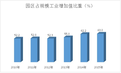 2、园区占比不断提升。省级及以上产业园区占全市规模工业增加值的比重从2010年的52.2%提升到2014年62.2%,提高了10个百分点,预计到“十二五”末园区占比达到65%。