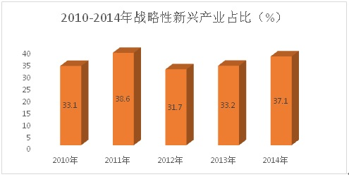 3、战略性新兴产业快速发展。以轨道交通装备、新一代信息技术、生物医药为代表的战略性新兴产业快速发展。2014年,七大战略性新兴产业实现增加值356.86亿元,占规模工业增加值的比重为37.1%,比2010年提高4个百分点。今年1-9月,全市轨道交通装备业实现增加值127.3亿元,增长9.3%,高于规模工业增幅1.4个百分点;计算机、通讯和其他电子设备制造业实现增加值54.1亿元,增长9.3%,高于规模工业增幅1.4个百分点。