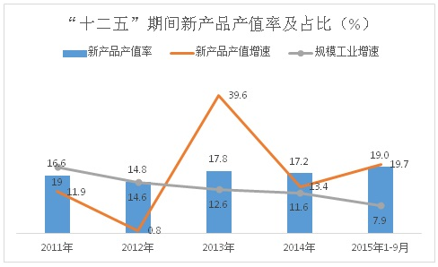 3、创新能力不断增强。一是研发经费持续增长。2014年,全市研发经费支出达46.23亿元,占GDP的比重为2.14%,比2010年提高了0.74个百分点。二是新产品产值快速增长。“十二五”期间,新产品产值年均增长17.1%,高于规模工业增速4个百分点。今年1-9月,全市新产品产值411.5亿元,增长19.7%,高于规模工业产值增速11.4个百分点。新产品产值率(占规模工业总产值的比重)从2011年的16.6%,提高到目前的19%,提升了2.4个百分点。