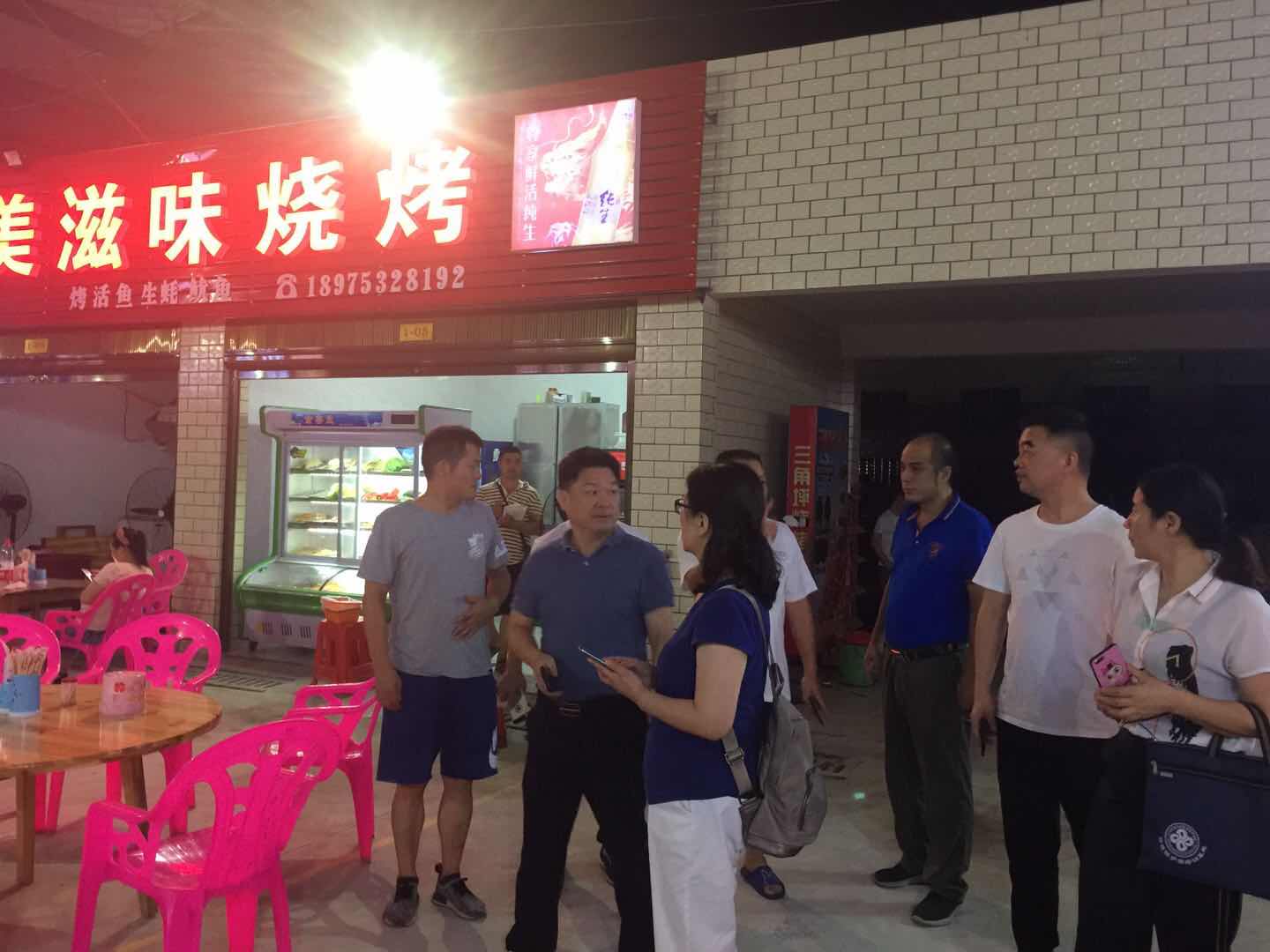 1.7月30日晚上,省督察二组现场核查四组黄懿(组长)、李锡泉、姚高峰、邱美珍、李玉林(联络员)在县政府副县长刘新明、县环保局局长段秋文、县城管局局长李炳彪的陪同下,对向省环保督察组投诉的茶陵夜宵城进行现场督察。茶陵“犀城夜市”占地面积1034平方米,共设有夜宵门面68个,市场内设有停车场、垃圾中转站、公厕等配套设施齐全。每个入驻的夜宵摊点必须安装油烟净化器等环保设施。省督察组组长黄懿向夜霄摊老板详细询问生产经营和油烟治理设施建设运行等情况。据周围群众反映,茶陵县夜霄摊定点布局、建设油烟净化设施后,夜霄摊油烟扰民的现象大大减少了。