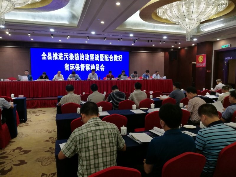 2.7月30日下午,在华天大酒店三楼湖南厅召开了2018年全县推进污染防治攻坚战暨配合做好省环保督察动员会。县委书记彭新军、县委副书记、县长江小忠,以及谢志军、姜衡湘、王友文、李鹏程、肖锦霞、黄勇等县级领导出席了会议,各乡镇党委书记、乡镇长,县直相关职能单位负责人参加了会议。县委副书记、县长江小忠作全县污染防治攻坚战工作报告;县委常委、统战部长黄勇宣读《关于进一步压实环保督查整改责任严防污染反弹的通知》。会议要求各部门进一步健全机制,确保迅速行动不拖延;进一步压实责任,确保问题整改不遗漏;进一步严格执法,确保通过验收不反弹。