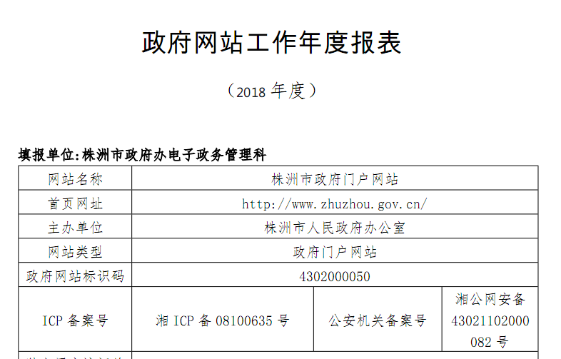 发布日期:20190117 发布机构:根据《国务院办公厅关于做好政府网站年度报表发布工作的通知》(国办函〔2018〕12号)文件要求,现将《株洲市政府网站工作年度报表(2018年度)》公示如下:附件:株洲市政府网站工作年度报表(2018年...