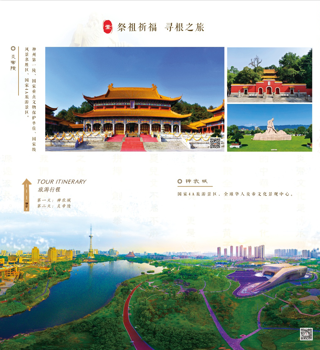 【祭祖祈福、寻根之旅】游国家4A旅游景区、国家级风景名胜区、国家重点文物保护单位、神州第一陵——炎帝陵;全球华人炎帝文化景观中心——神农城,祭祖祈福,感受炎帝福泽后人之博大精深的神农文化,追寻古老的农耕文明之源,华夏人脉之根。