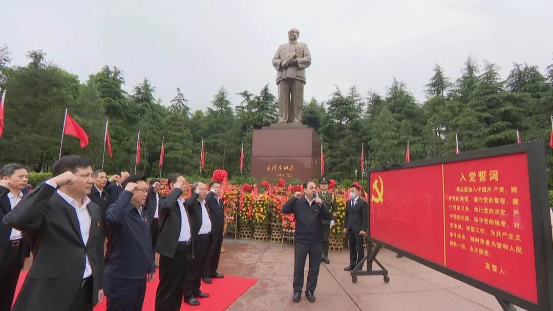 阳卫国一行首先来到韶山毛泽东广场,向毛泽东同志铜像敬献花篮,表达对毛主席的崇高敬意和无限追思。随后,阳卫国高举右拳,带领大家重温入党誓词。