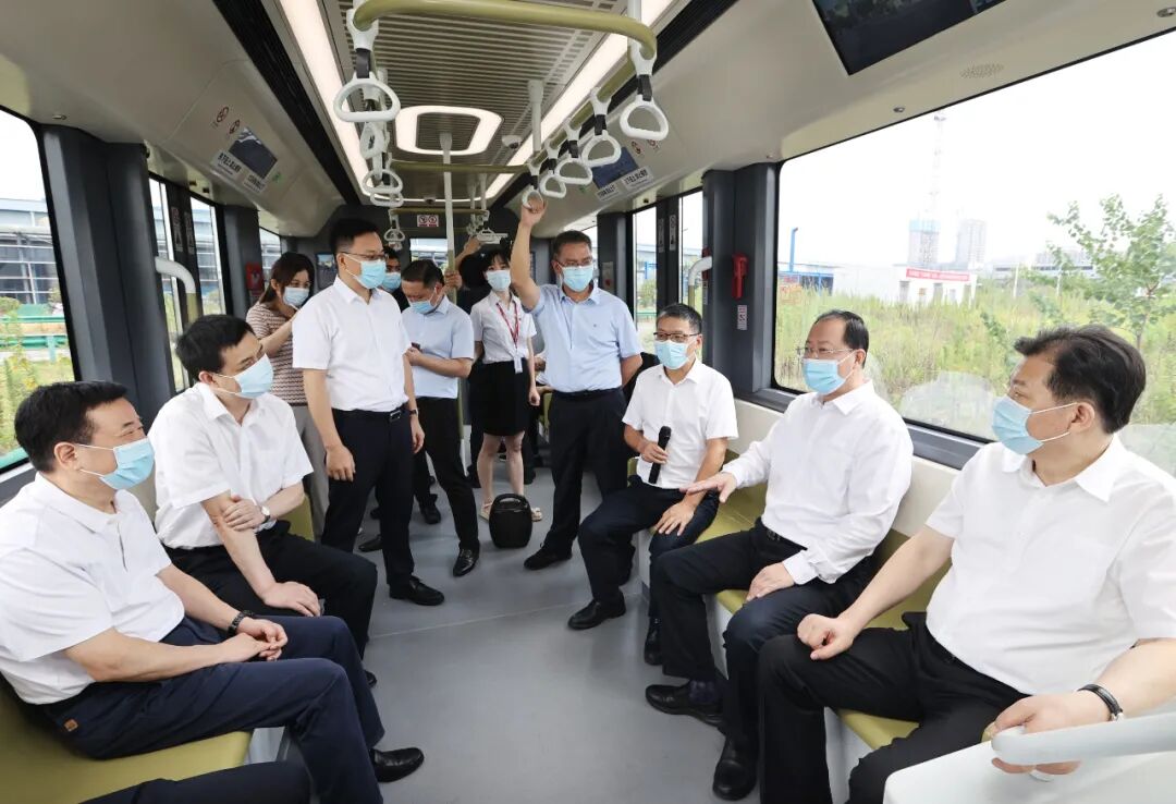 ▲毛伟明一行在时代新材料科技股份有限公司调研时,乘坐体验智轨交通系统。