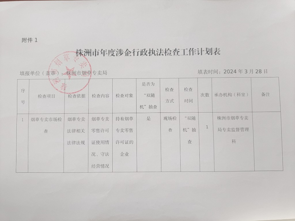20.国家统计局株洲调查队2024年度涉企行政执法检查工作计划表