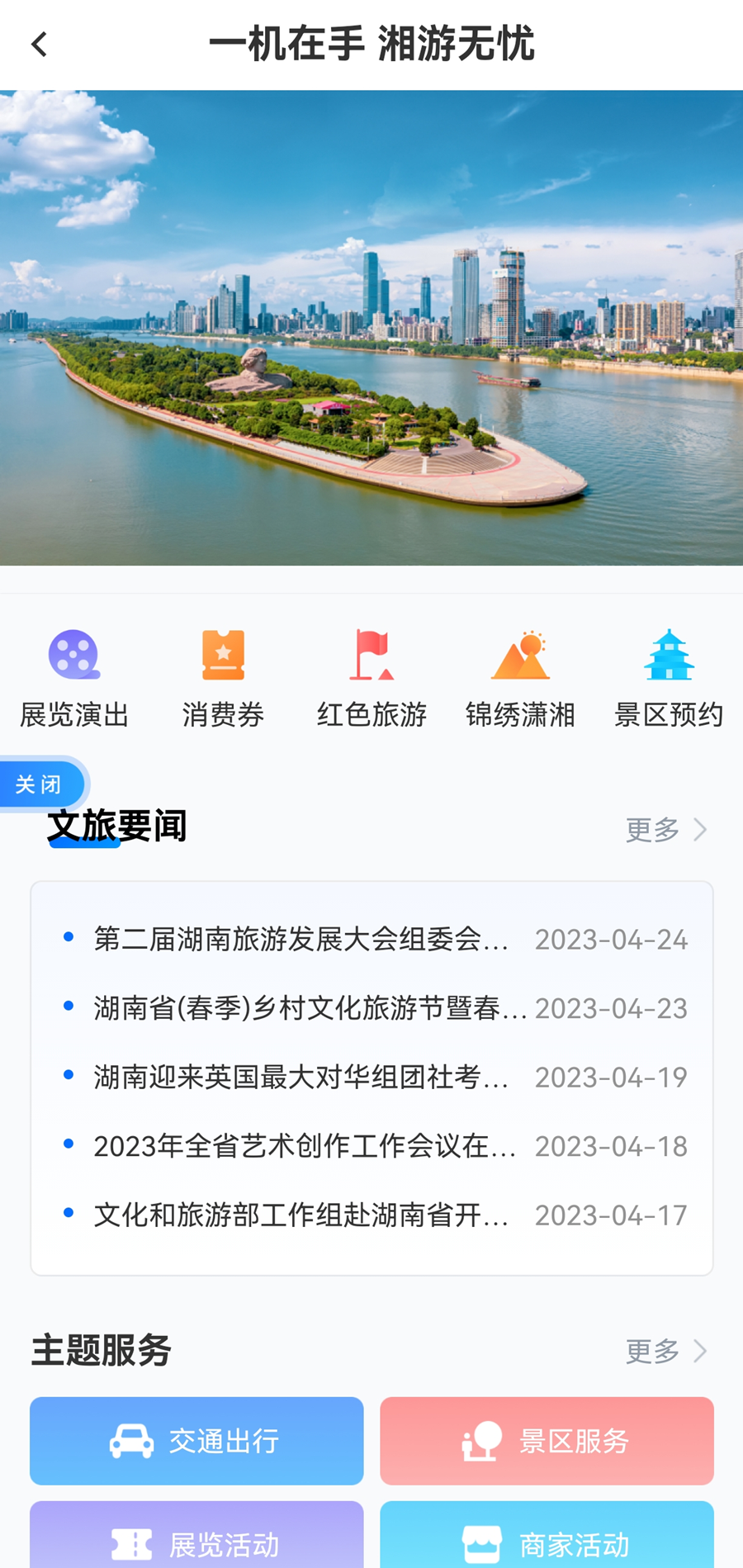 “畅游湖南”专区全面完成与省政务服务一体化平台对接,联动省文旅厅和各市州文旅部门,提供交通出行、景区服务、展览活动、商家活动、公共服务、电子证照等多种主题服务,用政务服务的温度让游客朋友的潇湘之旅变得更加丰富精彩。游客朋友下载“湘易办”超级服务端进入“畅游湖南”专区,可以获取景点介绍、展览演出活动、旅游线路以及出行提示提醒等旅游信息,享受景区预约、热门推荐等专属服务,解锁消费券、数币红包领取等惊喜活动,尽情打卡湖湘美景美食和风土人情。
