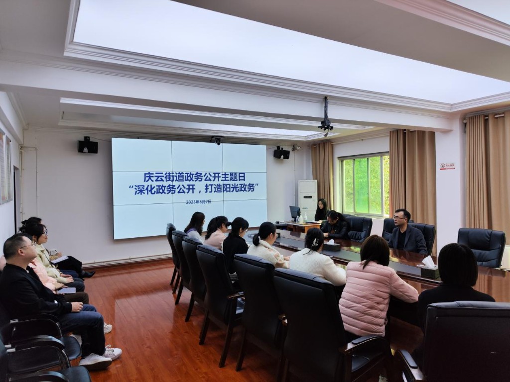2023年3月7日,庆云街道办事处开展主题为“深化政务公开,打造阳光政务”的政务公开主题日活动。街道党工委副书记、政务公开分管领导余强主持活动,辖区人大代表陈斯妮、庆云街道各(村)社区政务公开专干、群众代表参加活动。